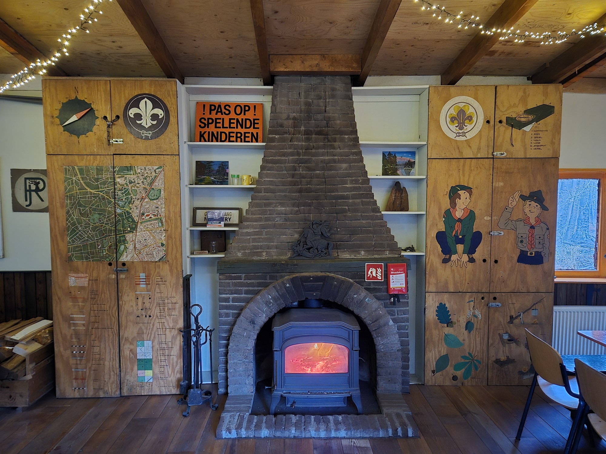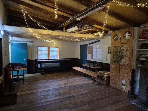 Een bordspel, knutselproject of drankjes uit je mok. Deze zaal heeft daar de ruimte voor en de muren luisteren graag mee met het spannende verhaal rondom de houtkachel.